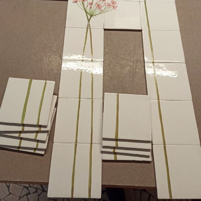 Zwanenbloemen handgeschilderd op Friese witjesIn dit geval met zeer lange steel, maar dat hoef je natuurlijk niet te gebruiken.Normale prijs 540,00€ nu 270,00€Bekijk de foto's goed bij de steel zit een bakfoutje.Effen witjes op voorraad.