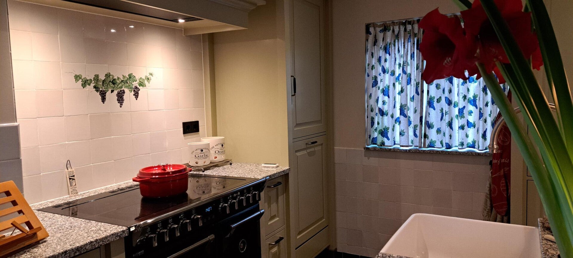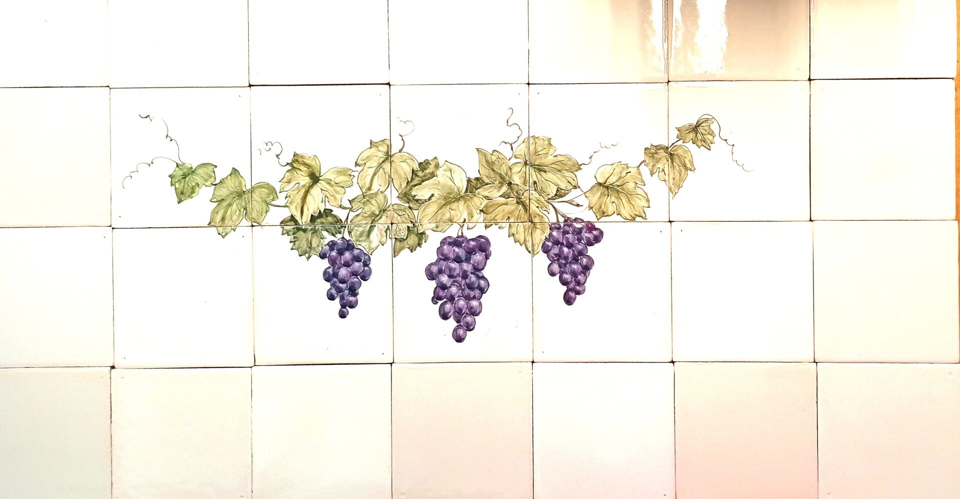Leuk druivenrankje, ambachtelijk geschilderd op originele witjes 13x13cm.