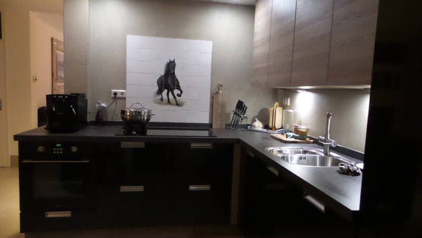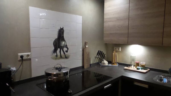 Het Friese paard, ambachtelijk geschilderd op originele witjes.